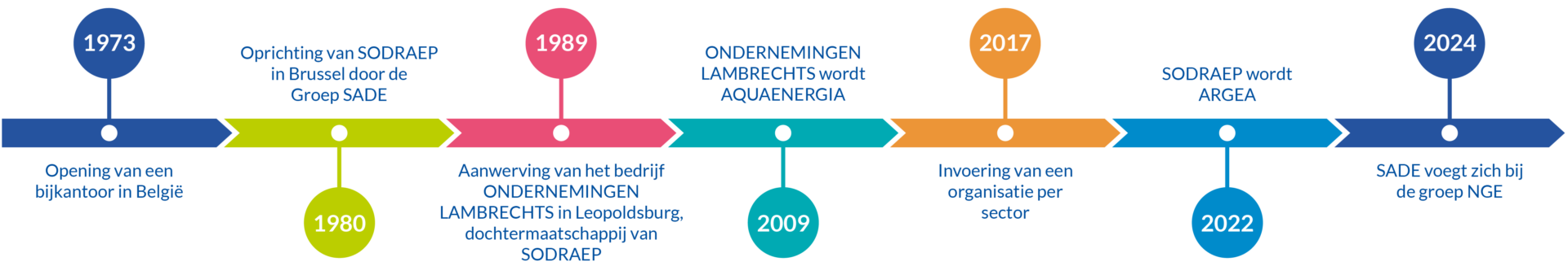 SODRAEP, opgericht in 1980, was gespecialiseerd in hydraulische werken. Sindsdien zijn de kernactiviteiten geëvolueerd naargelang de behoeften van de klanten en de verwerving van nieuwe vaardigheden. SODRAEP weerspiegelt deze evolutie nu in een nieuwe identiteit die, zonder de geschiedenis van het bedrijf te verloochenen :